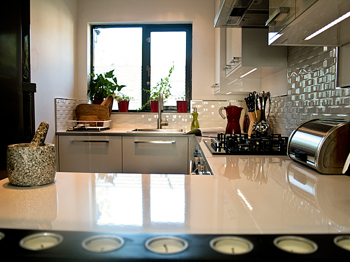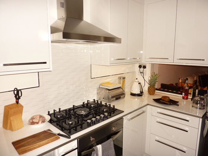 Bespoke kitchen designed to utilise as well as possible the limited space available, without compromising on the desired looks.