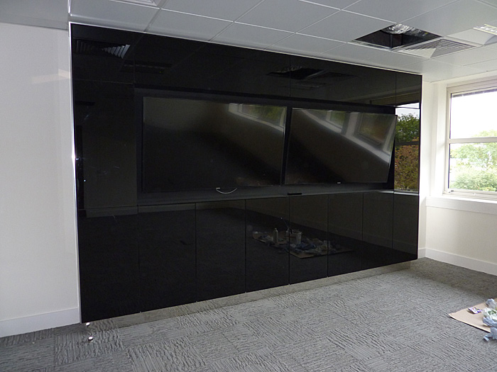 A very exciting project in which Neatworks Carpentry Ltd. was contracted by the main contractor Wooldridge Contractors Ltd to design, supply & Install 5 Bespoke Media Cabinets in Matt Black. Executed as part of complete upgrade the units will suite the needs of 5 different meeting and conference facilities in the headquarters of Phones International, PJ Media and Expansys - all companies headed by Peter Jones of BBC's Dragons' Den. The cabinets were subsequently cladded in glass by other contractor as per the architect's requirements.